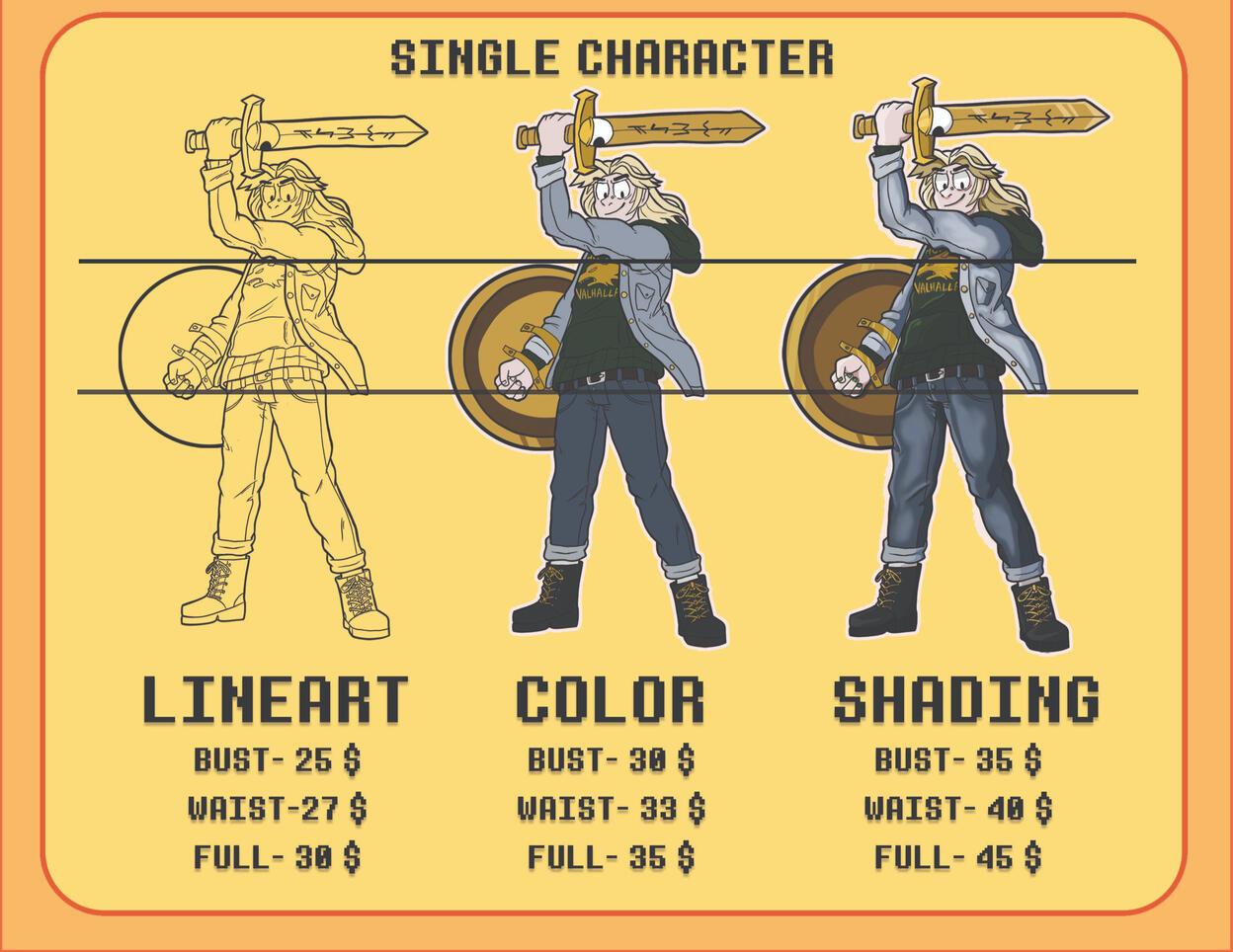 - I will draw most any character so long as they are not an offensive representation of any race or body type.- I am currently not taking NSFW commissions at this time.-All payment is upfront via PayPal, but I may take Venmo as well depending on the situation.-Currently, you can expect commissions to have a week long turnaround at most, with constant updates during the sketching, line art, and coloring process. Updates can be increased or decreased upon request!-Refunds can be requested only before the line art phase.-After the commission is complete, it may be used for the client's personal use and reposted with credit on any social media site.- Do NOT upload my art to any AI site, use it as an NFT, or use it commercially.Thanks for reading!
